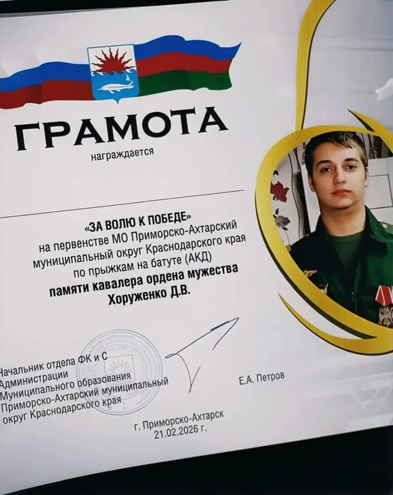 21 февраля в спортивной школе прошло Первенство муниципального образования Приморско-Ахтарский муниципальный округ Краснодарского края по прыжкам на батуте в дисциплине «Акробатическая дорожка». Соревнование было организовано в память Д. В. Хоруженко — воспитанника нашей спортивной школы, награждённого орденом Мужества.В первенстве приняли участие юные спортсмены, демонстрируя высокий уровень подготовки и мастерство исполнения акробатических элементов.